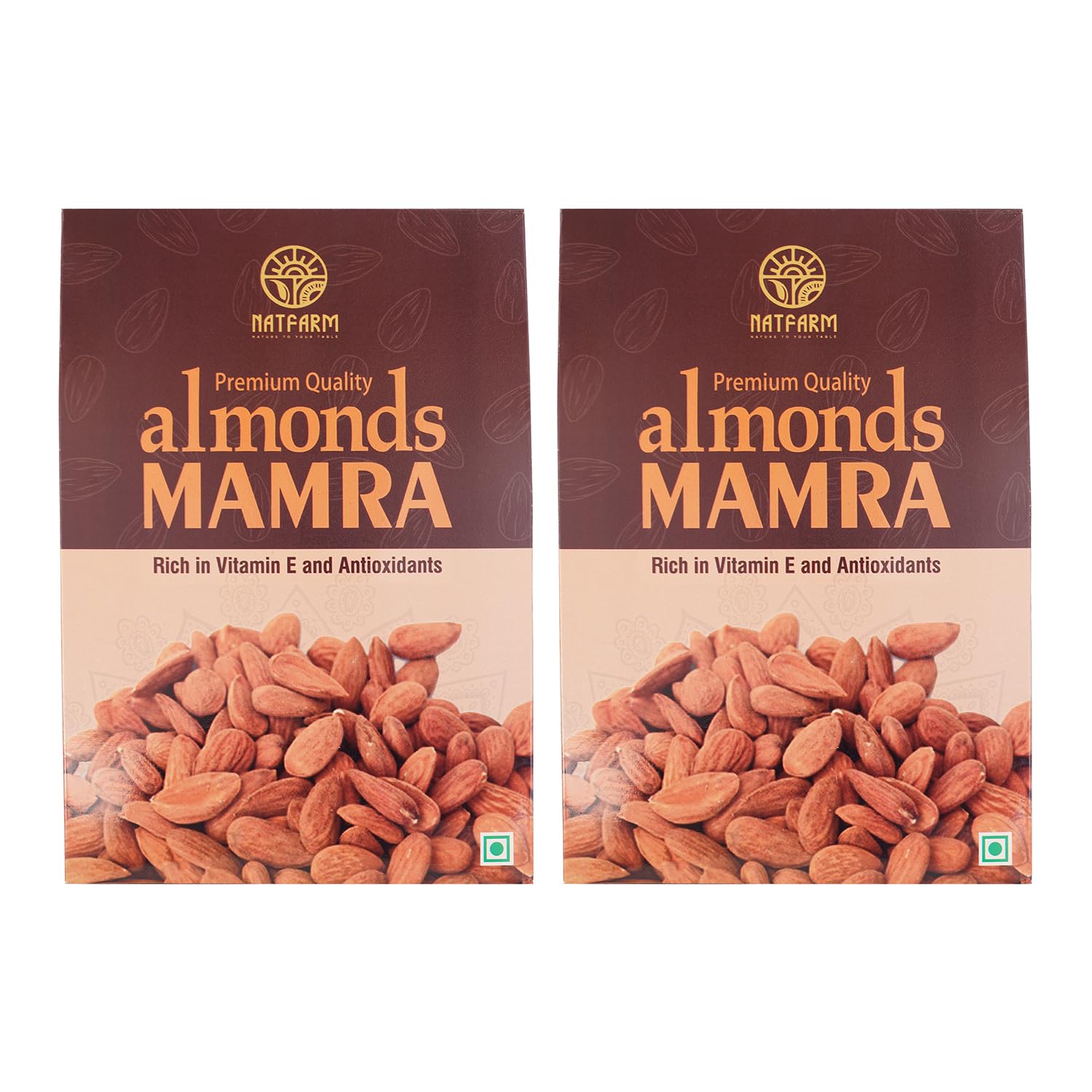 NATFARM Pure Mamra Almonds 500 gm, Super Healthy Crunchy Natural Mamra Badam, Snack Nuts Dry Fruits, Rich in Vitamin E & Antioxidants (Pack of 2)