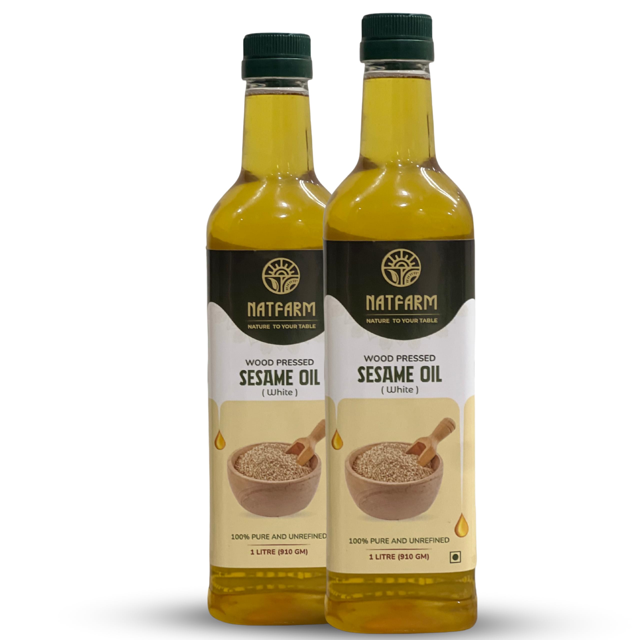 NATFARM Wood Pressed Sesame Oil 1L|100% Pure & Unrefined|Premium Quality Sesame Seeds|Rich Aroma & Flavor|Ideal for Cooking, Skin & Hair|Rich in Antioxidants - Pack of 2